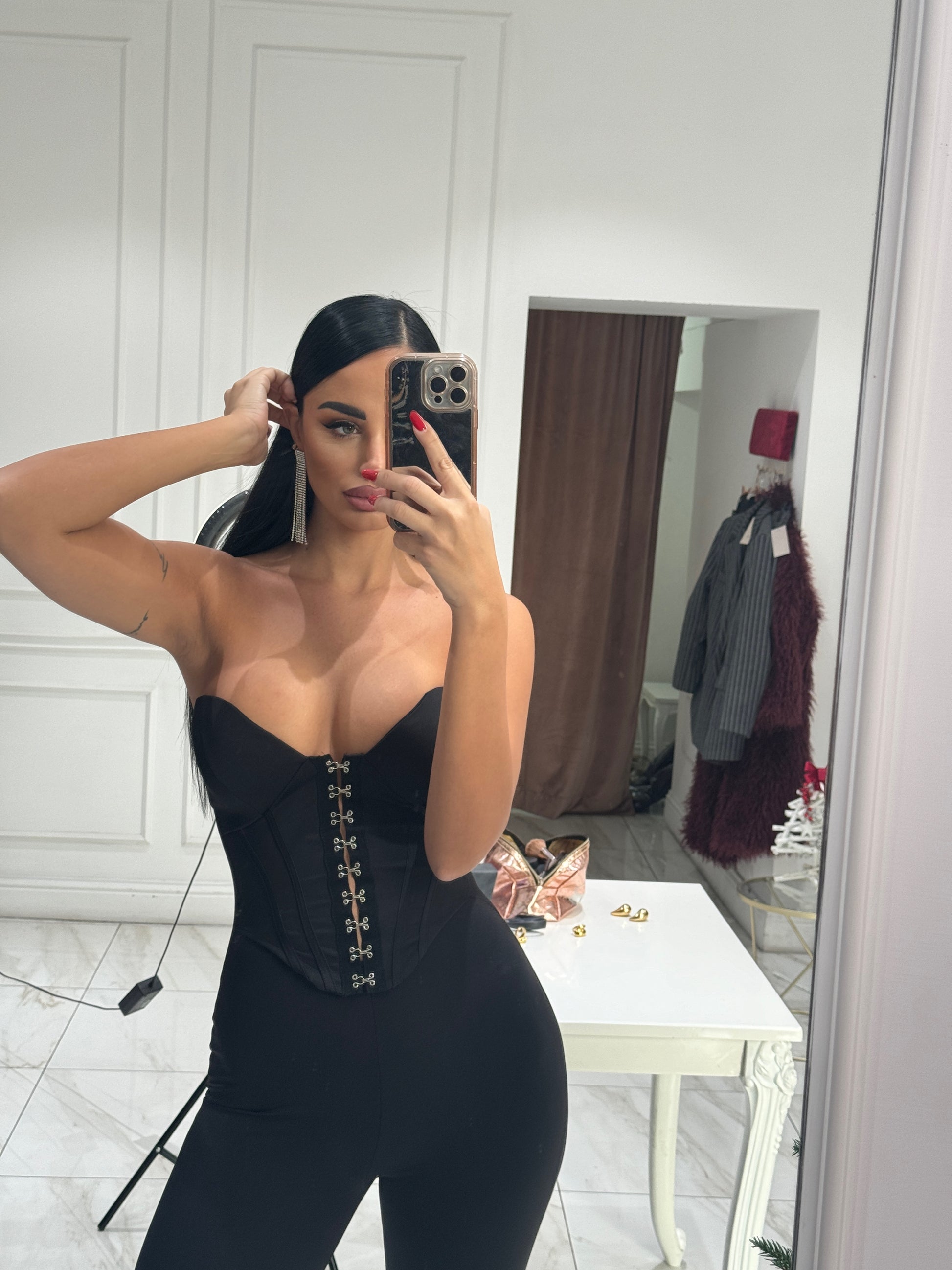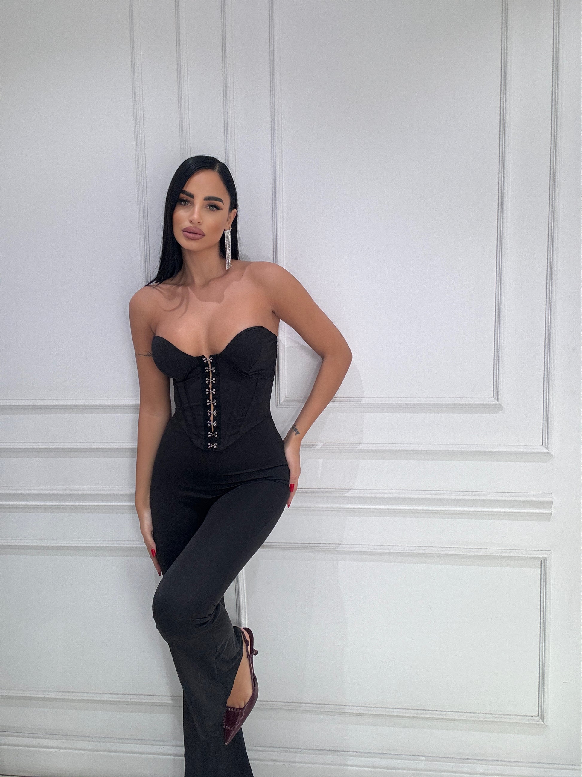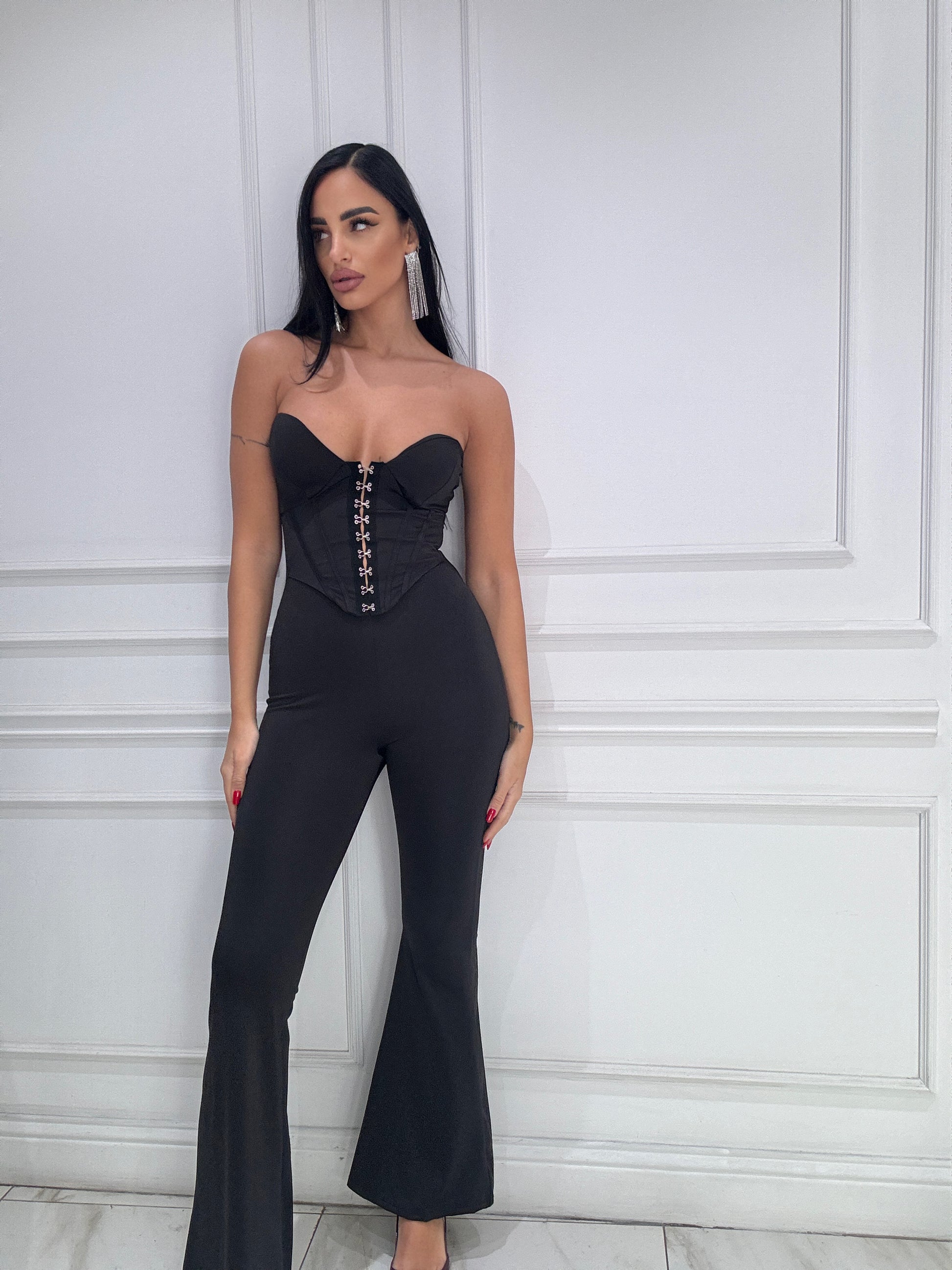 Tuta Mozzafiato tg unica , con coppe interne parte superiore modello bustino , parte inferiore leggermente zampa.